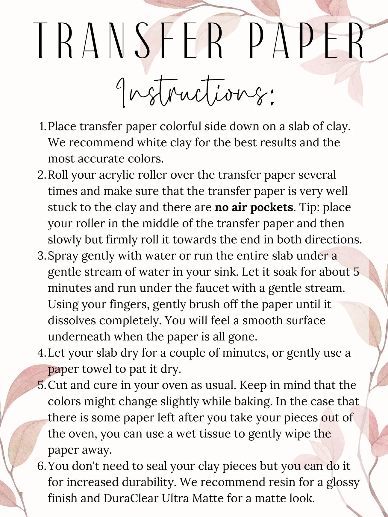 Transfer Paper Instructions: