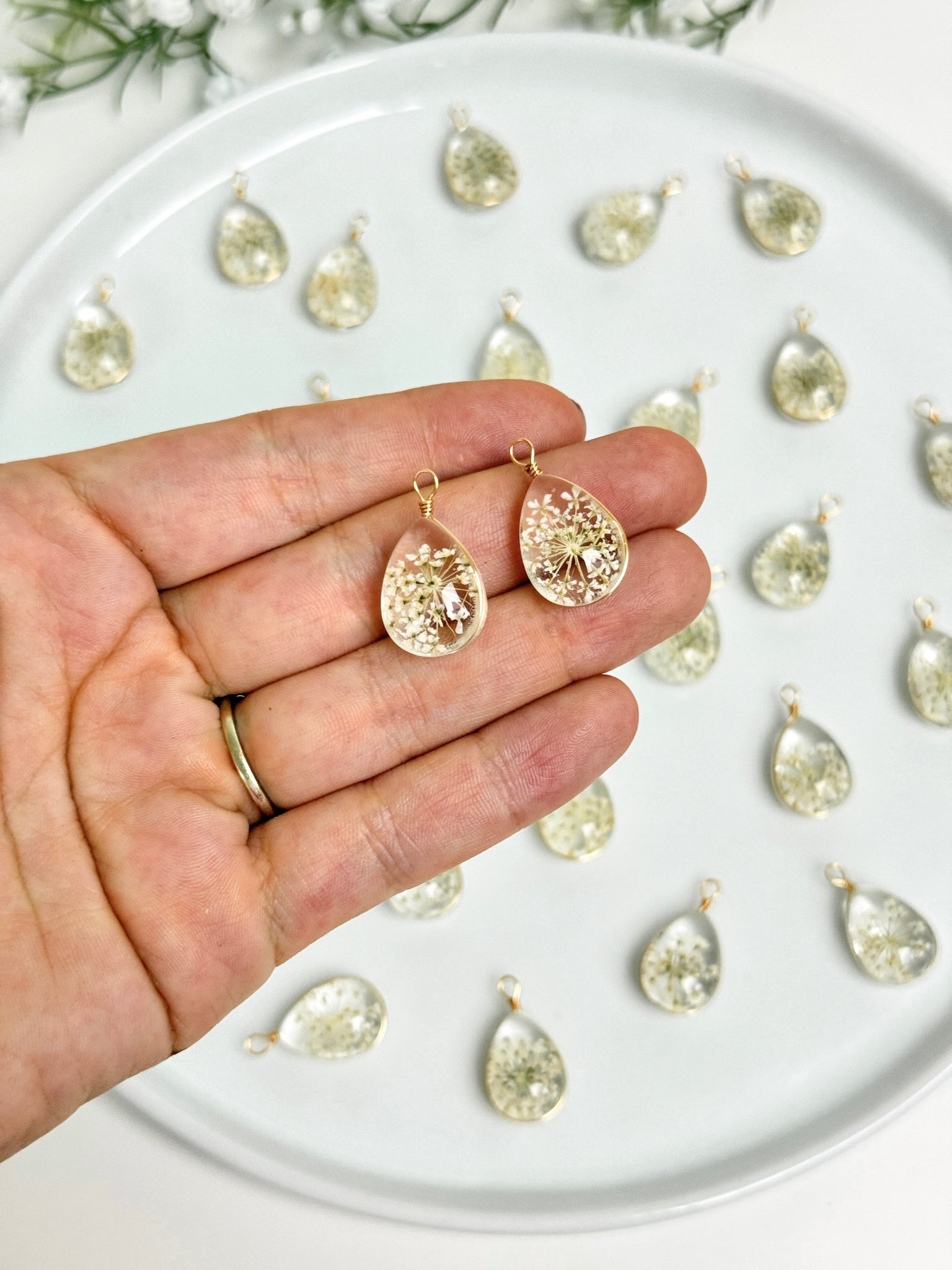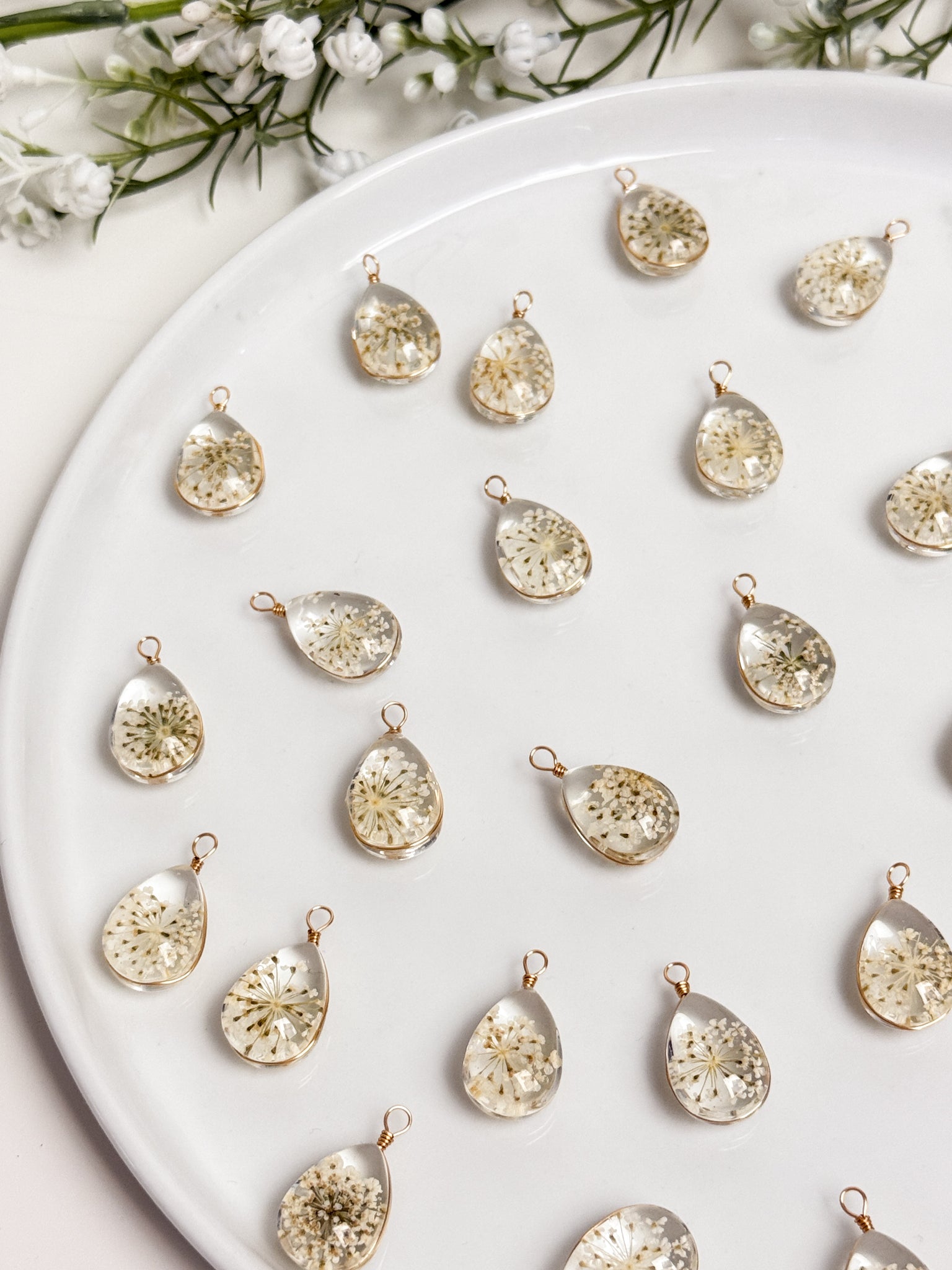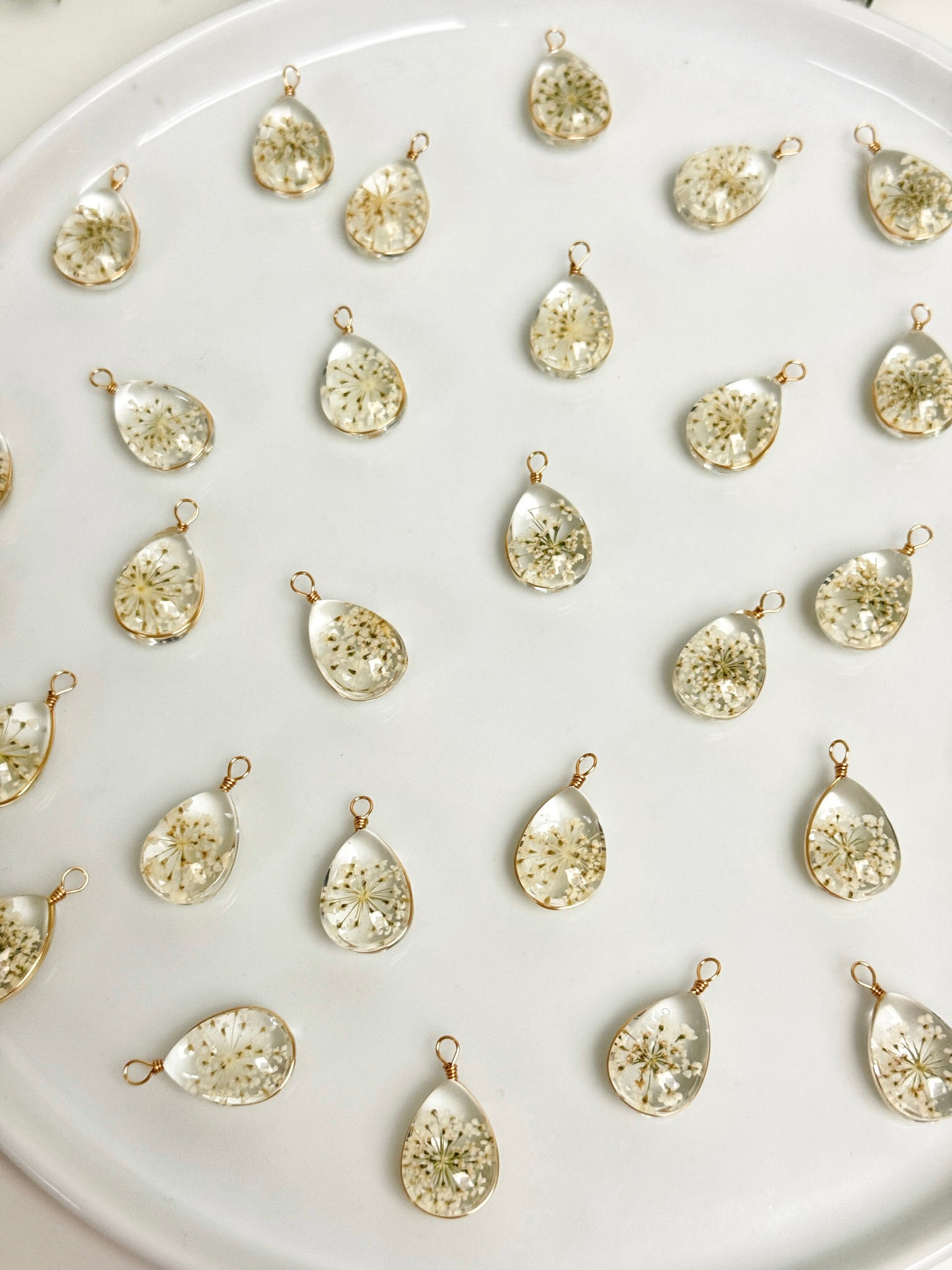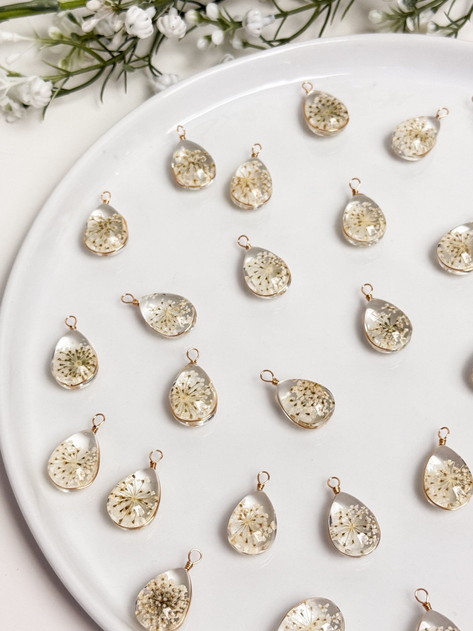 Golden Dried Flower Glass Pendant Charm with One Hole