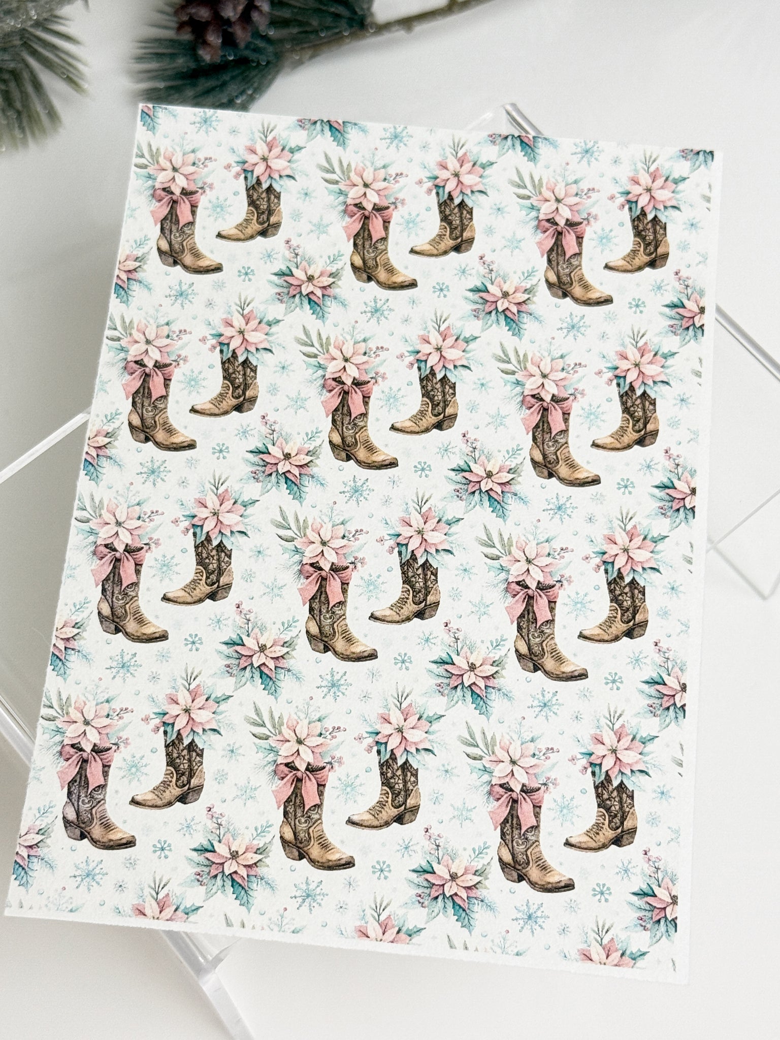 Transfer Paper Sheet 544 Christmas Cowboy Boots | Image Water Transfer
