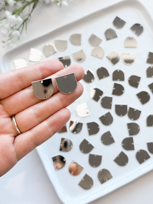White Gold Plated Brass Arch Pendant Connector with Two Holes
