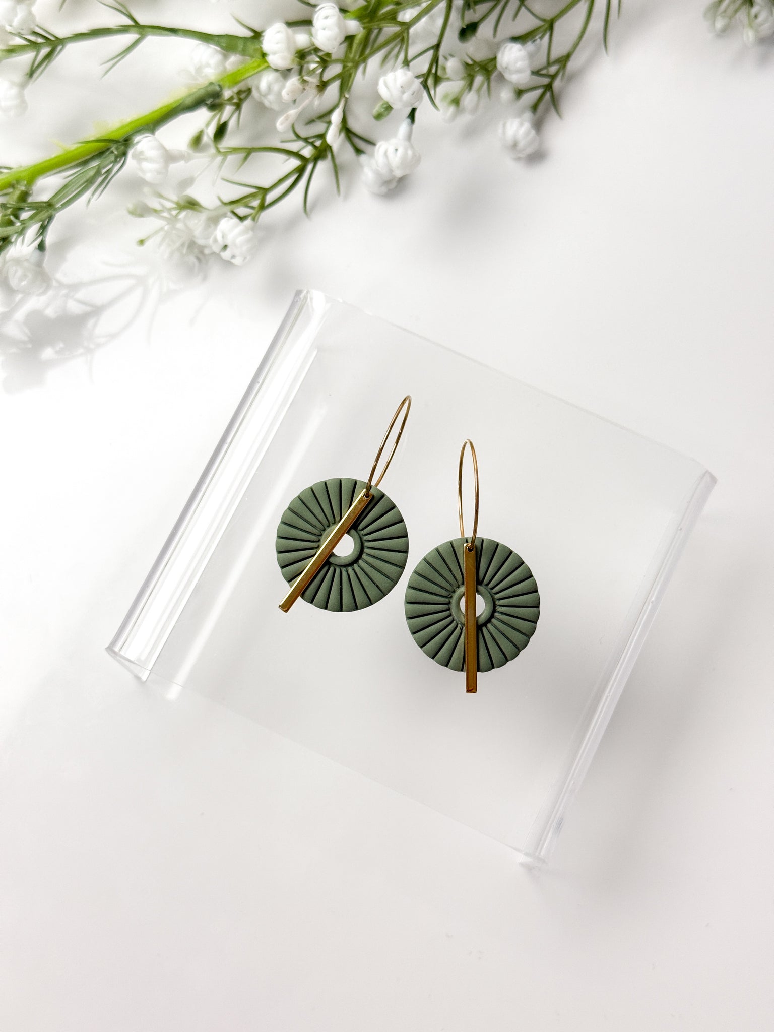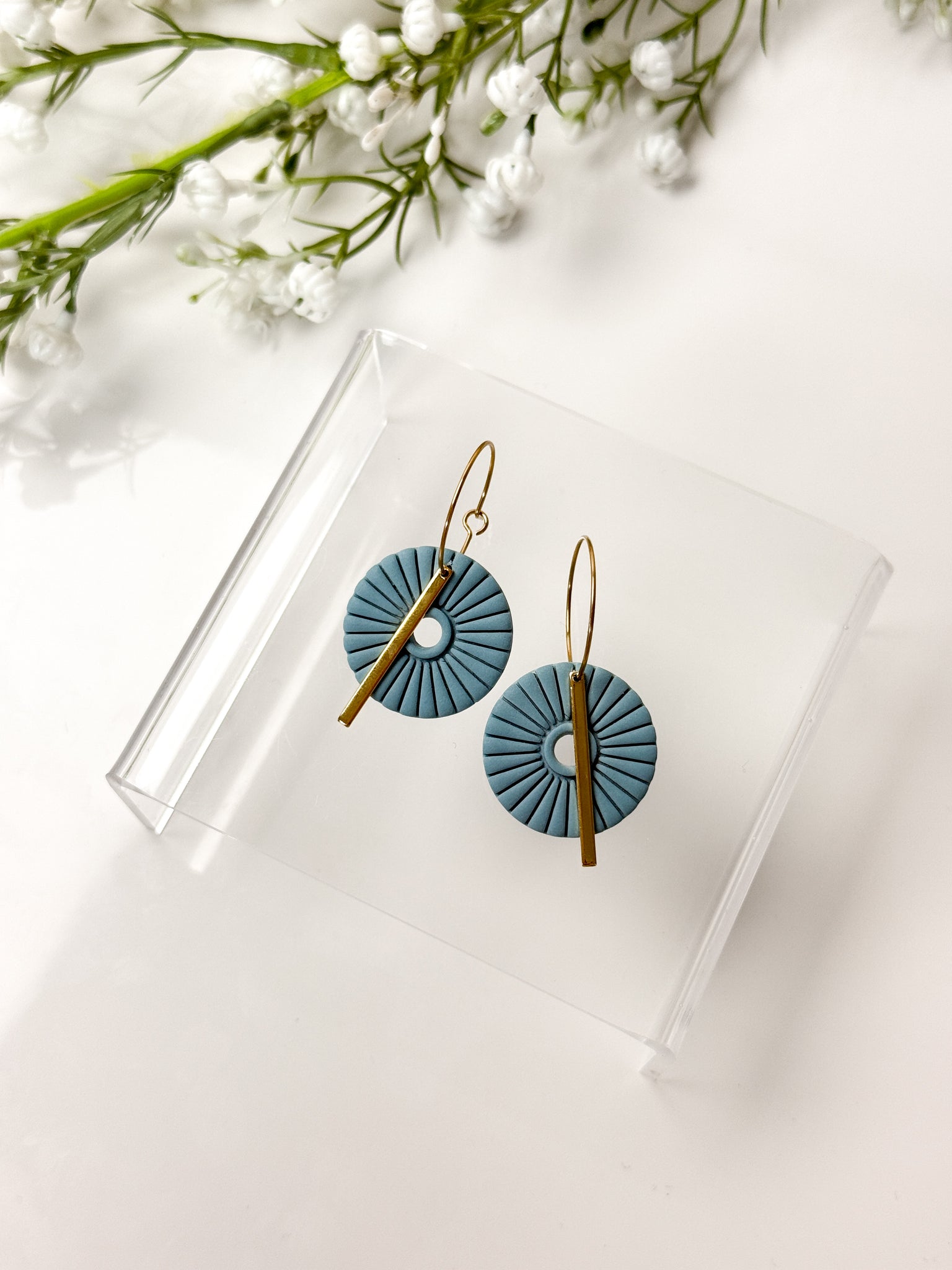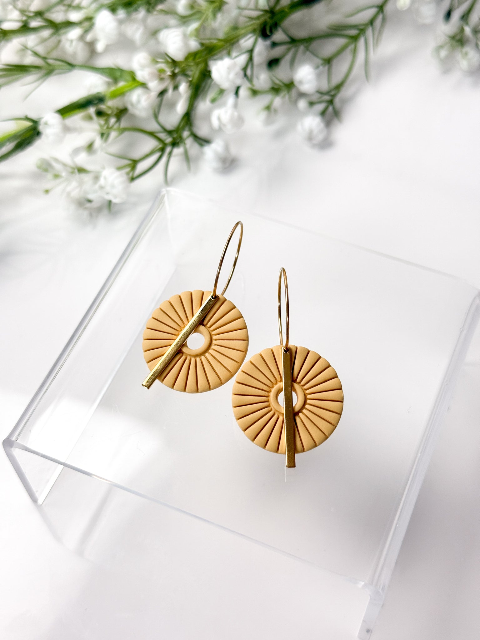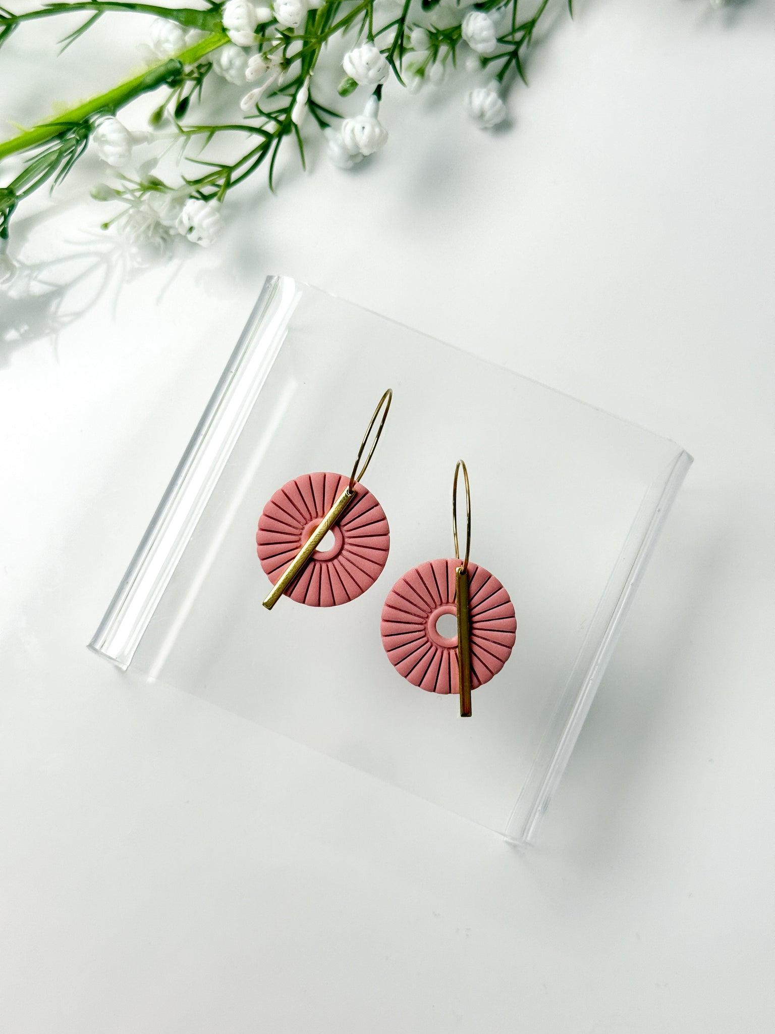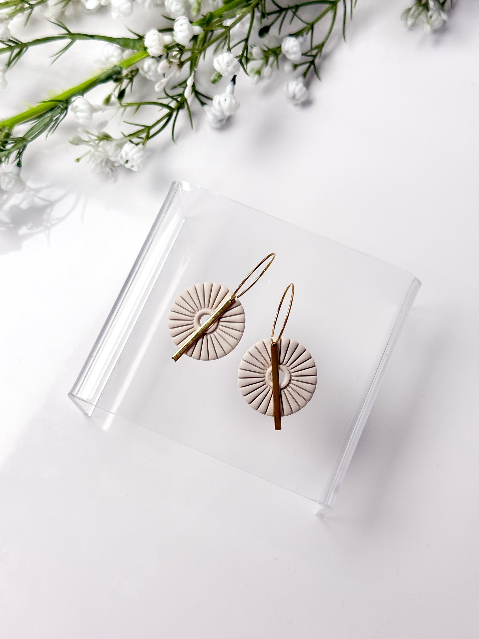 Each earring is made with surgical-grade stainless steel hooks, ball studs, or hoops, either gold or silver plated making them safe and comfortable for even the most sensitive ears. The earrings feature a unique and stylish design, handcrafted from durable polymer clay. With their lightweight feel and intricate patterns, these earrings are sure to make a statement wherever you go.