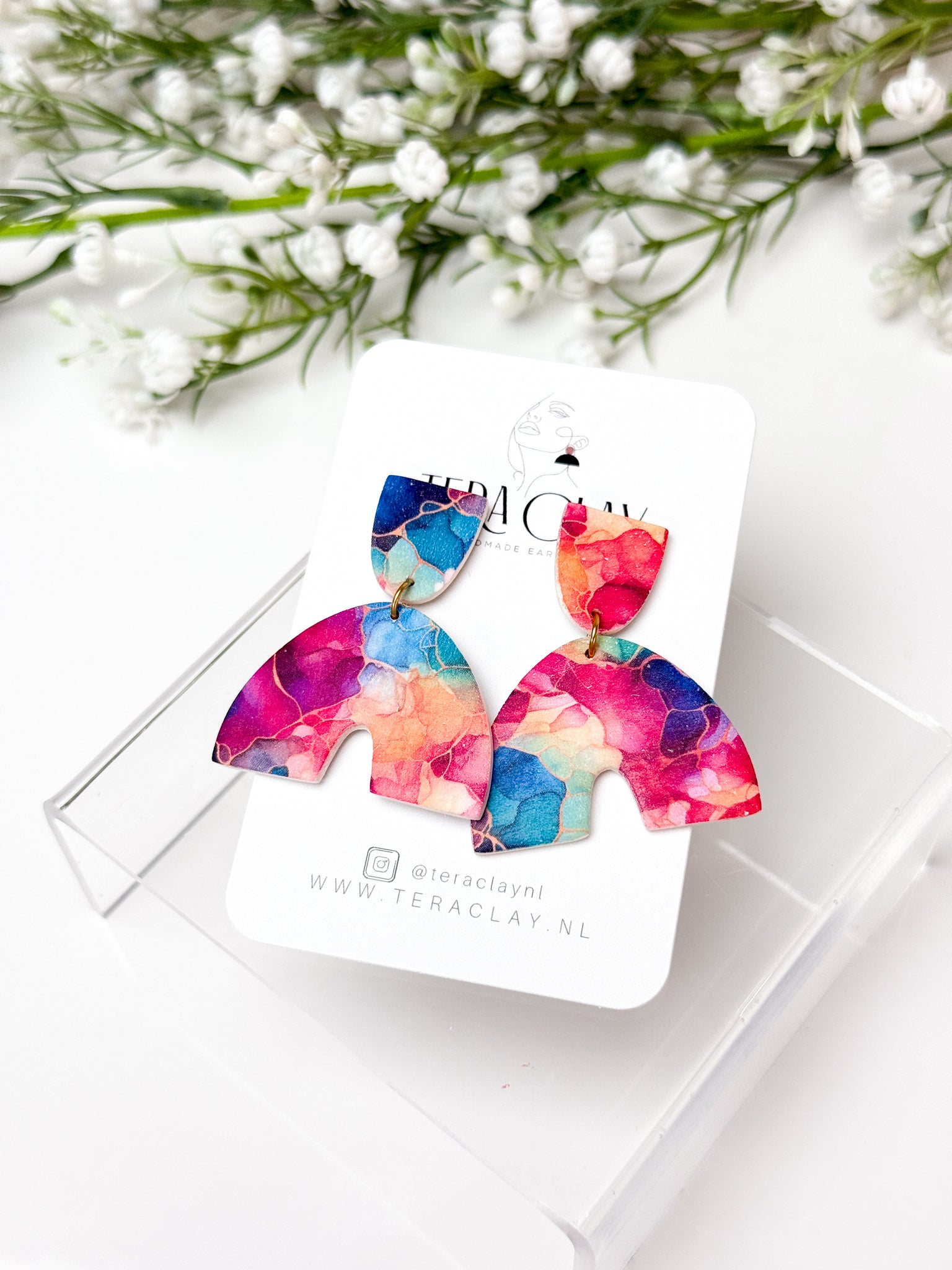 Each earring is made with surgical-grade stainless steel hooks, ball studs, or hoops, either gold or silver plated making them safe and comfortable for even the most sensitive ears. The earrings feature a unique and stylish design, handcrafted from durable polymer clay. With their lightweight feel and intricate patterns, these earrings are sure to make a statement wherever you go.
