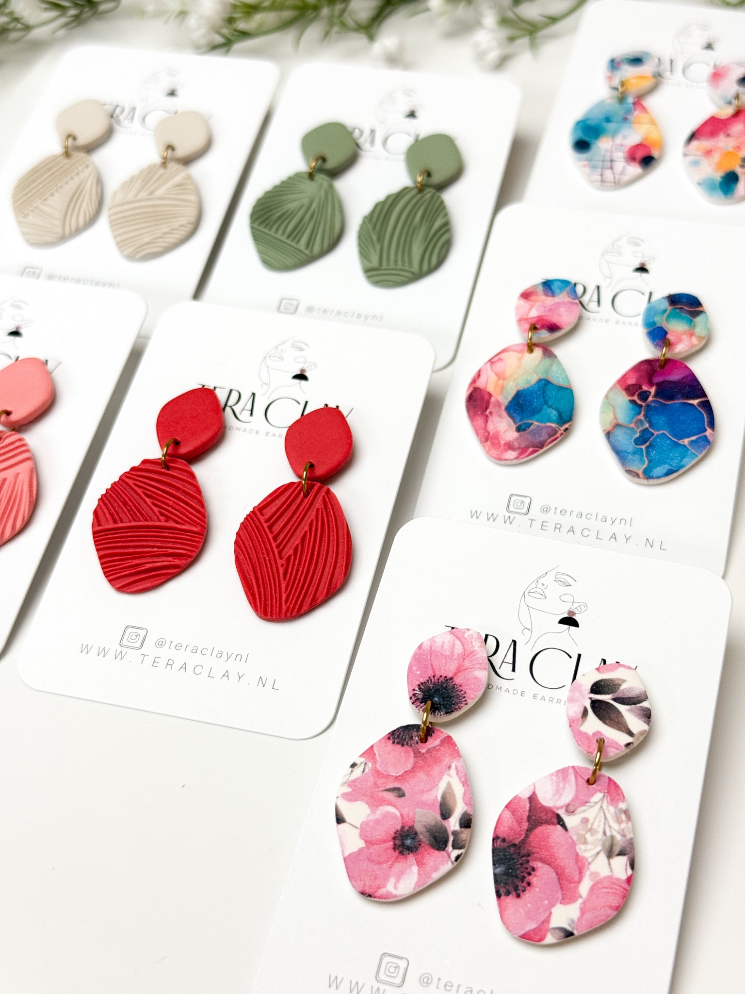 Each earring is made with surgical-grade stainless steel hooks, ball studs, or hoops, either gold or silver plated making them safe and comfortable for even the most sensitive ears. The earrings feature a unique and stylish design, handcrafted from durable polymer clay. With their lightweight feel and intricate patterns, these earrings are sure to make a statement wherever you go.