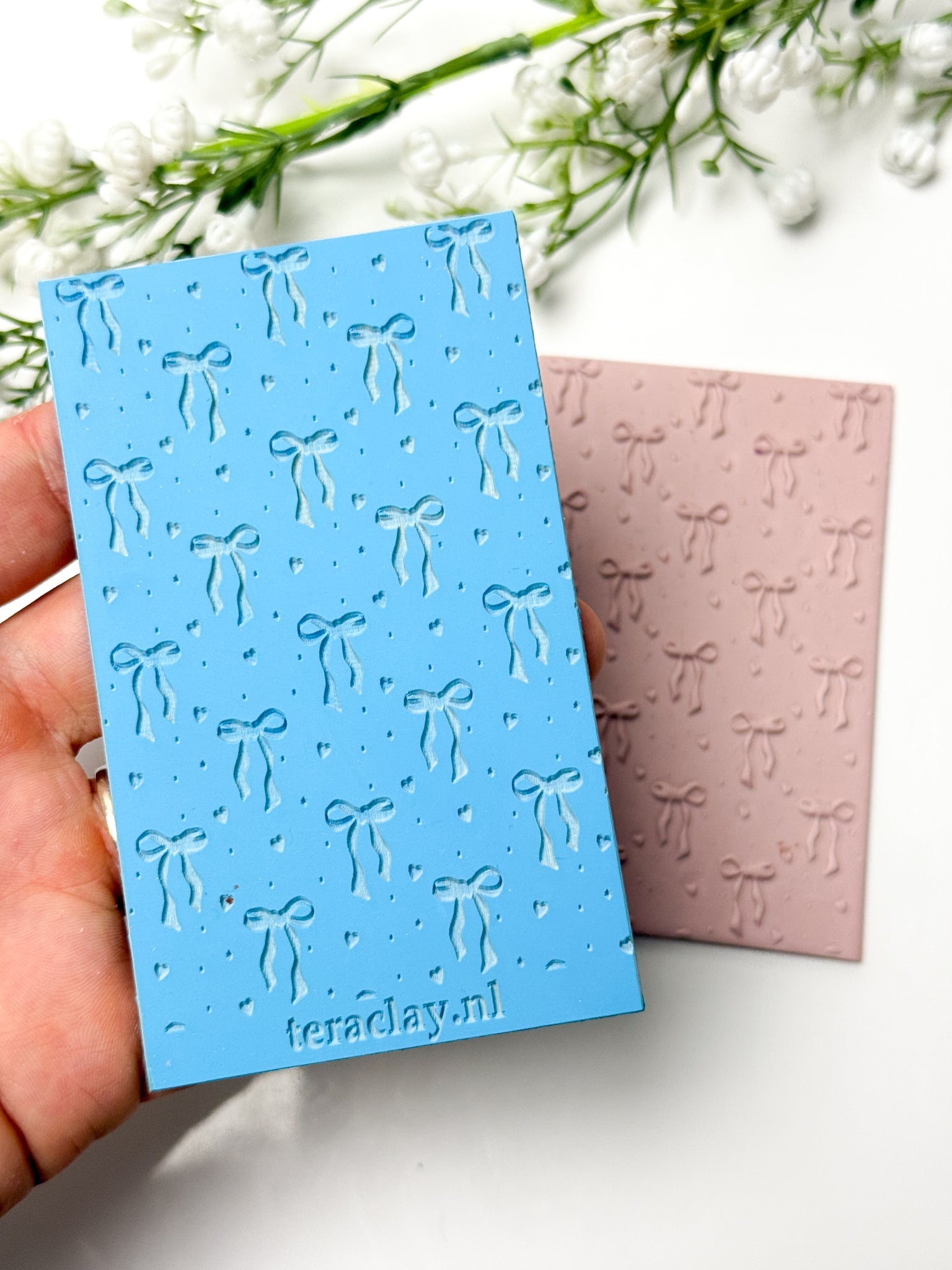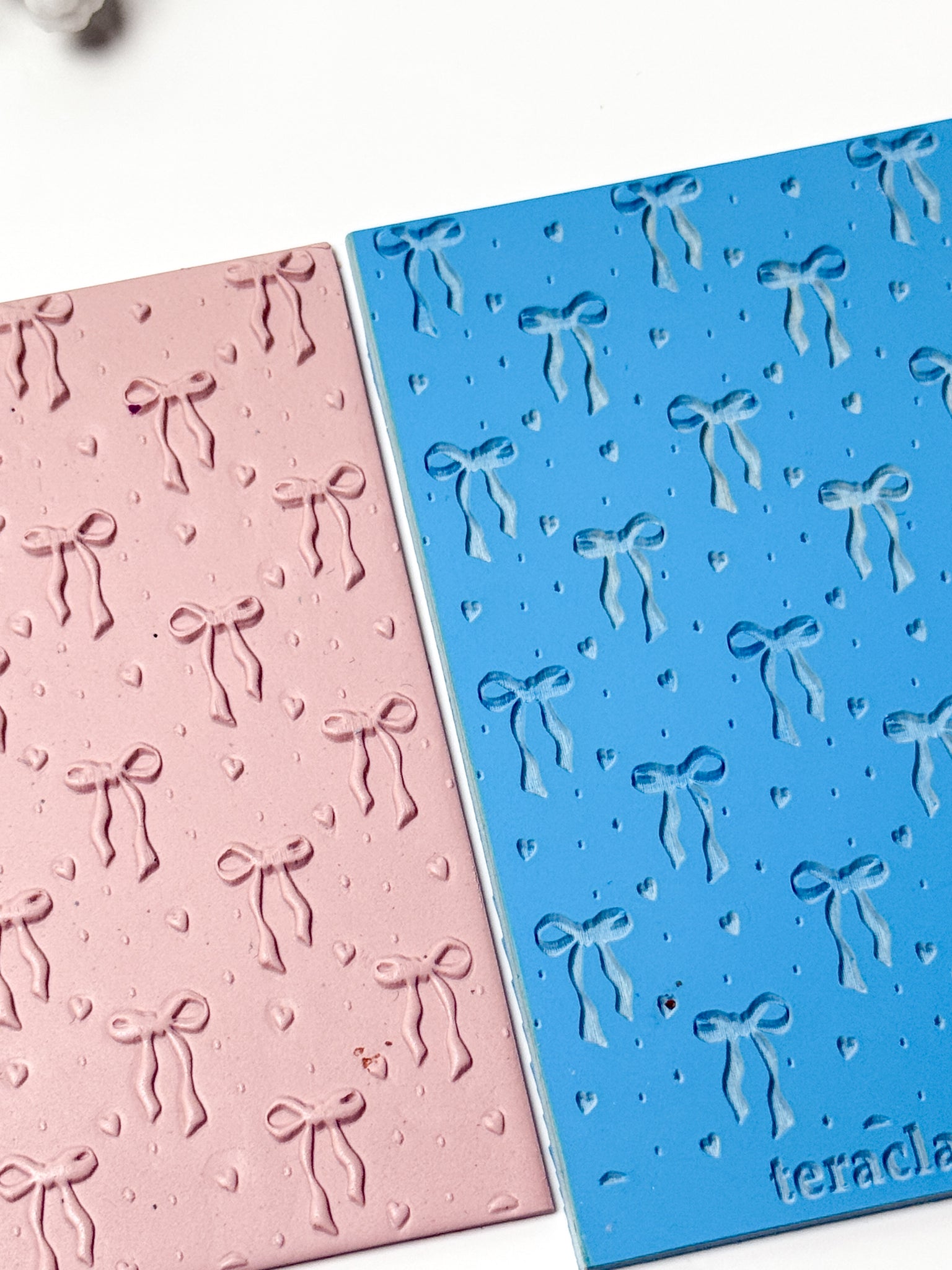 To avoid clay getting stuck inside the texture, you can use a bit of cornstarch or baby powder by lightly brushing it on the clay before using the mat.