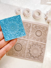 To avoid clay getting stuck inside the texture, you can use a bit of cornstarch or baby powder by lightly brushing it on the clay before using the mat.