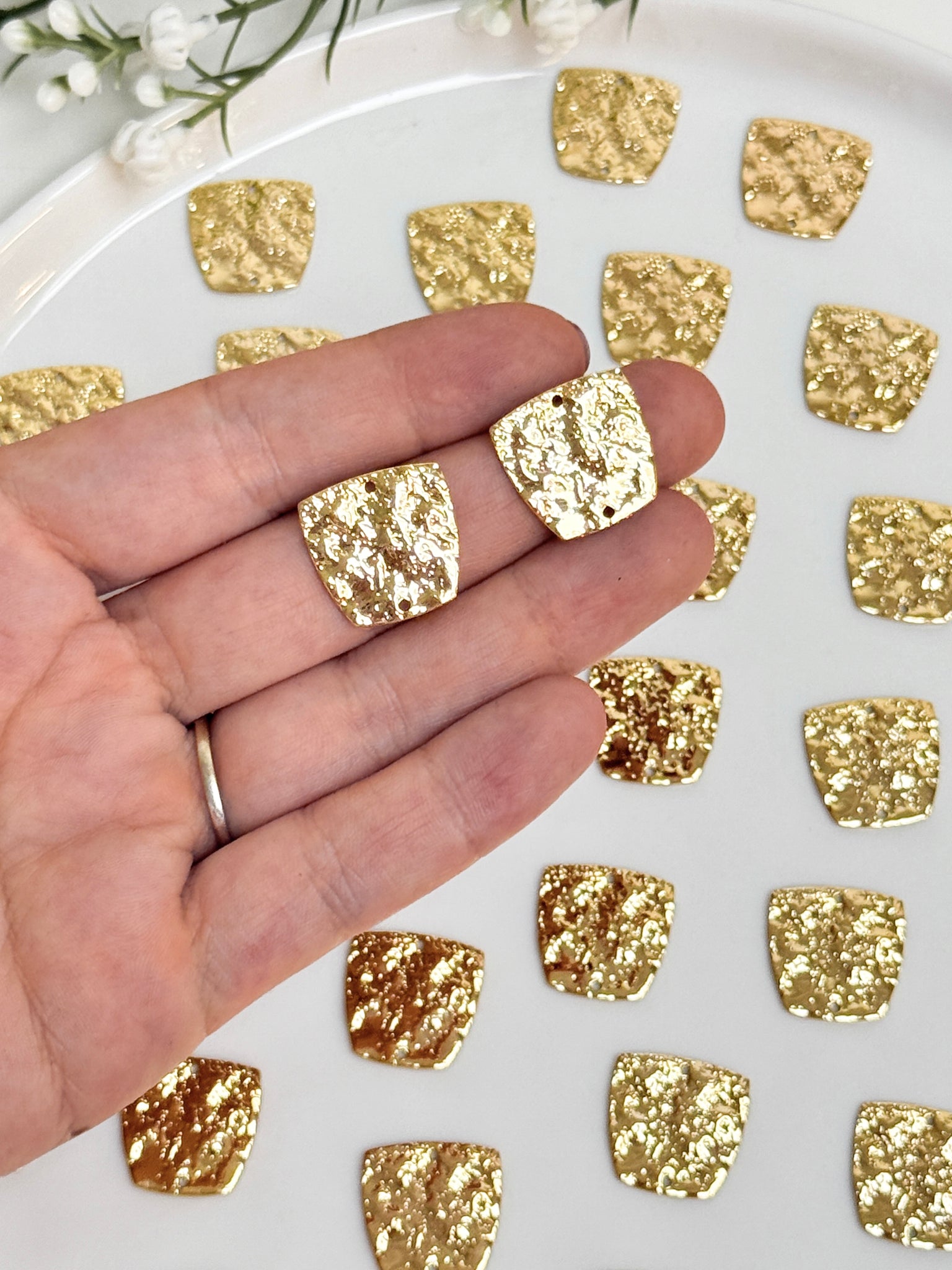 18K Gold Plated Hammered Trapezoid Connector with Two Holes