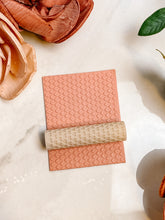 To avoid clay getting stuck inside the texture, you can use a bit of cornstarch or baby powder by lightly brushing it on the clay before using the roller. Achieving the same effect can be done by placing a piece of cling wrap on top of the clay.